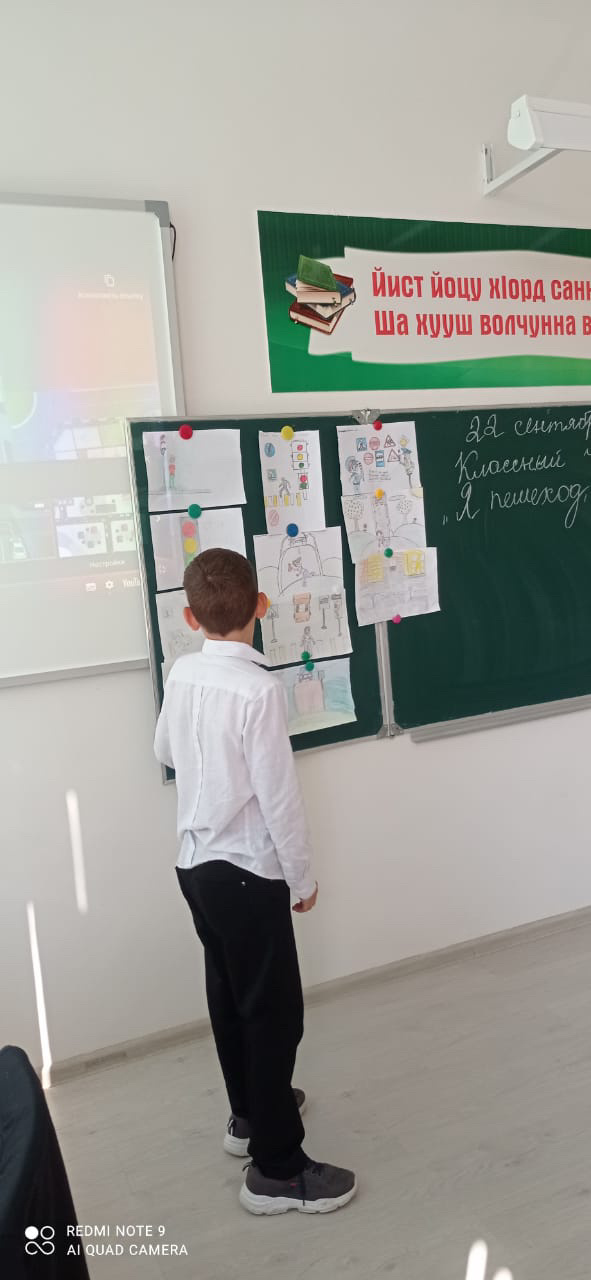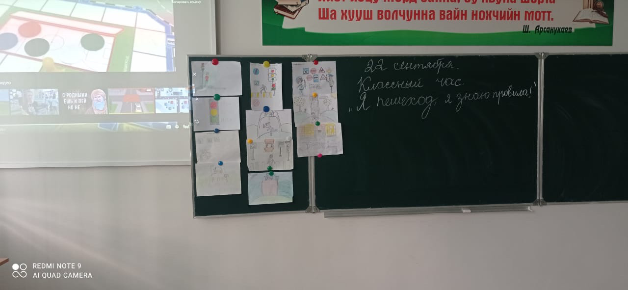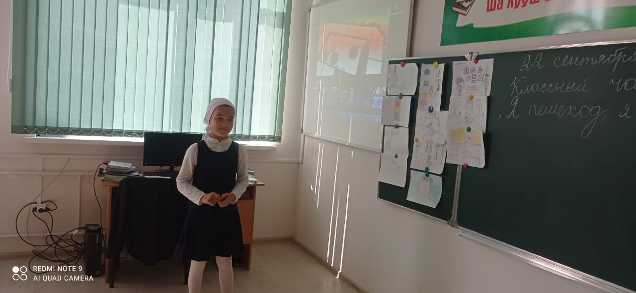 22 сентября, в 5 в классе классный руководитель Хусайинова Марет Адамовна провела классный час на тему: «Я пешеход, я знаю правила! »