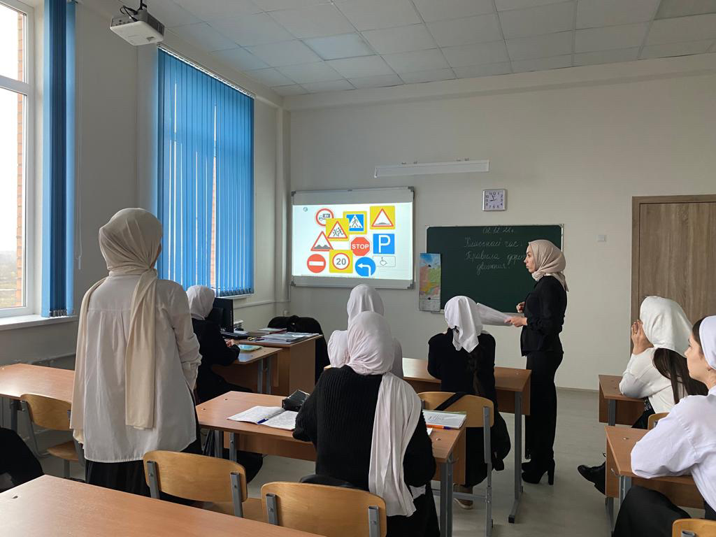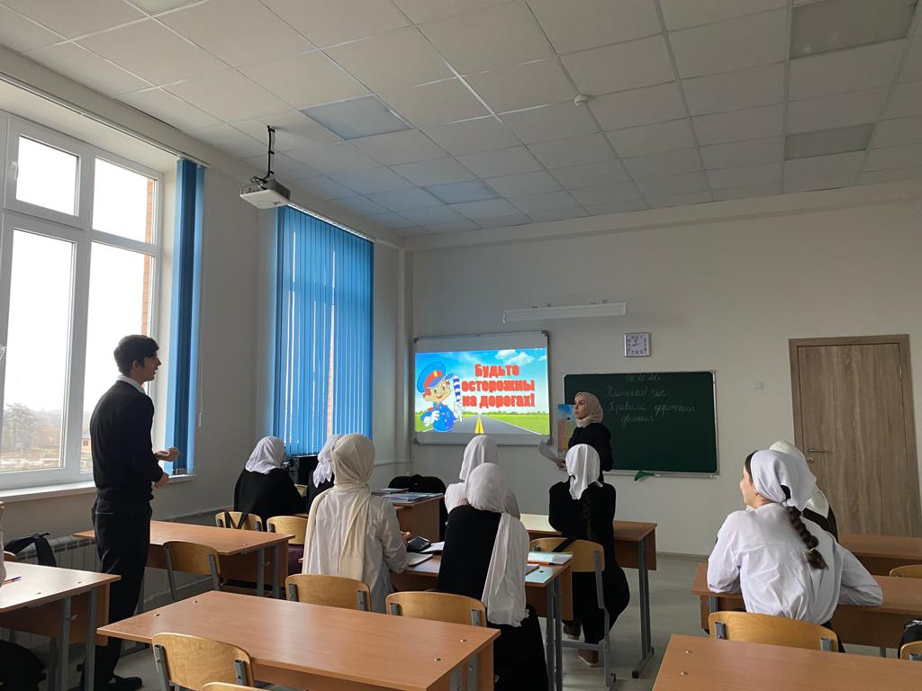 Классный руководитель Автарханова Тамила Умаровна провела в 10 классе, классный час на тему: «Будьте осторожны на дорогах!» в рамках мероприятия ПДД. Цель урока: формировать у учащихся сознательного и ответственного отношения к вопросам личной безопасности и безопасности окружающих участников дорожного движения.