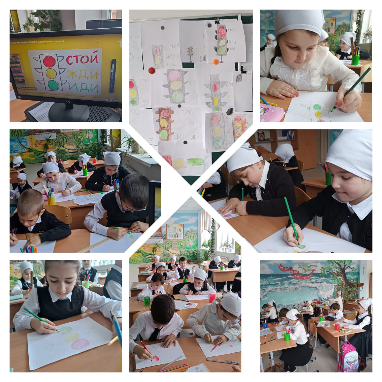 Сегодня, 8 декабря, в 1-а классе (кл.рук. Дикаева Р.Л.) прошло очередное занятие по ПДД. Дети изучали пешеходные знаки, смотрели ролики по ПДД, а также рисовали главного помощника на дороге - СВЕТОФО