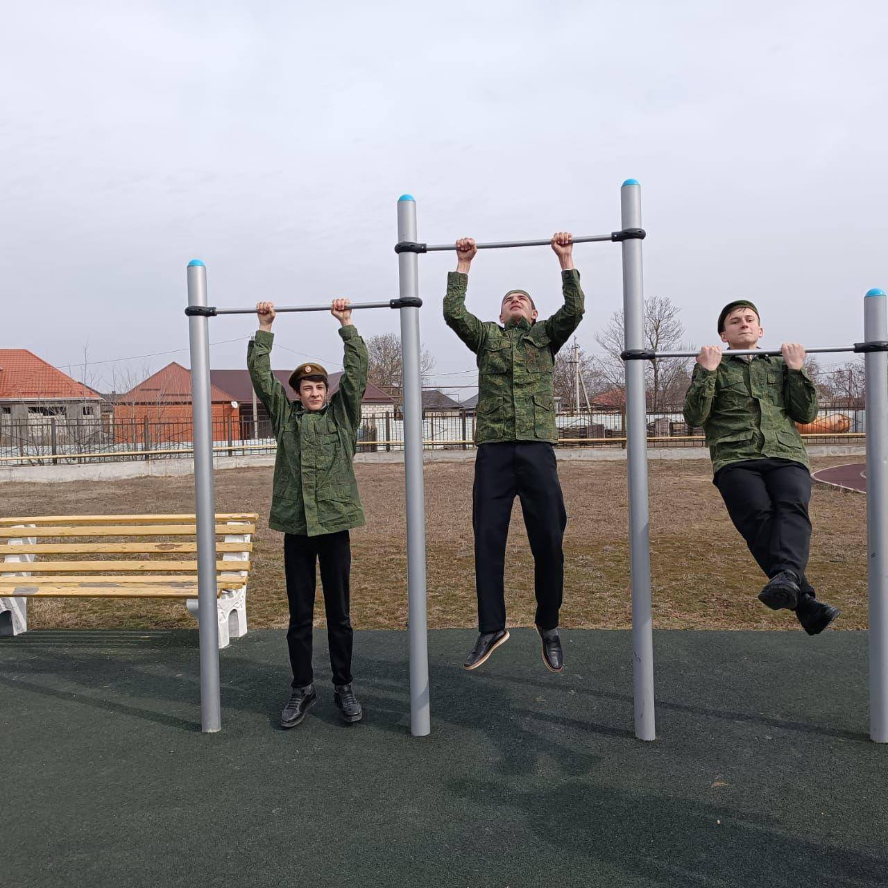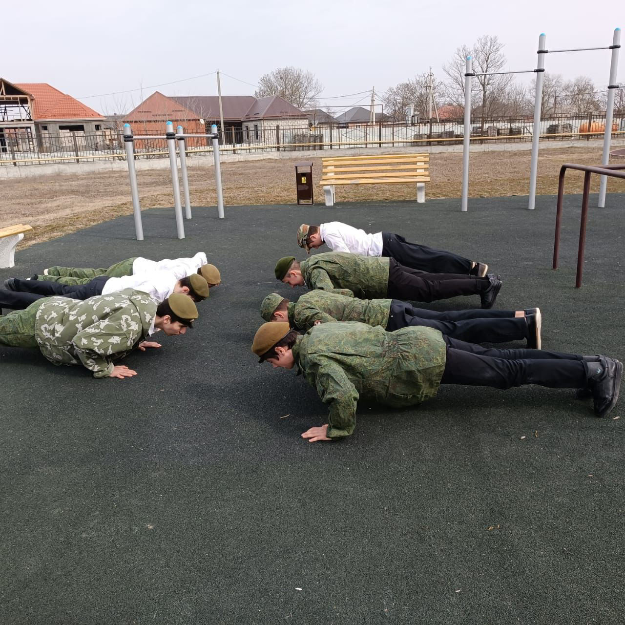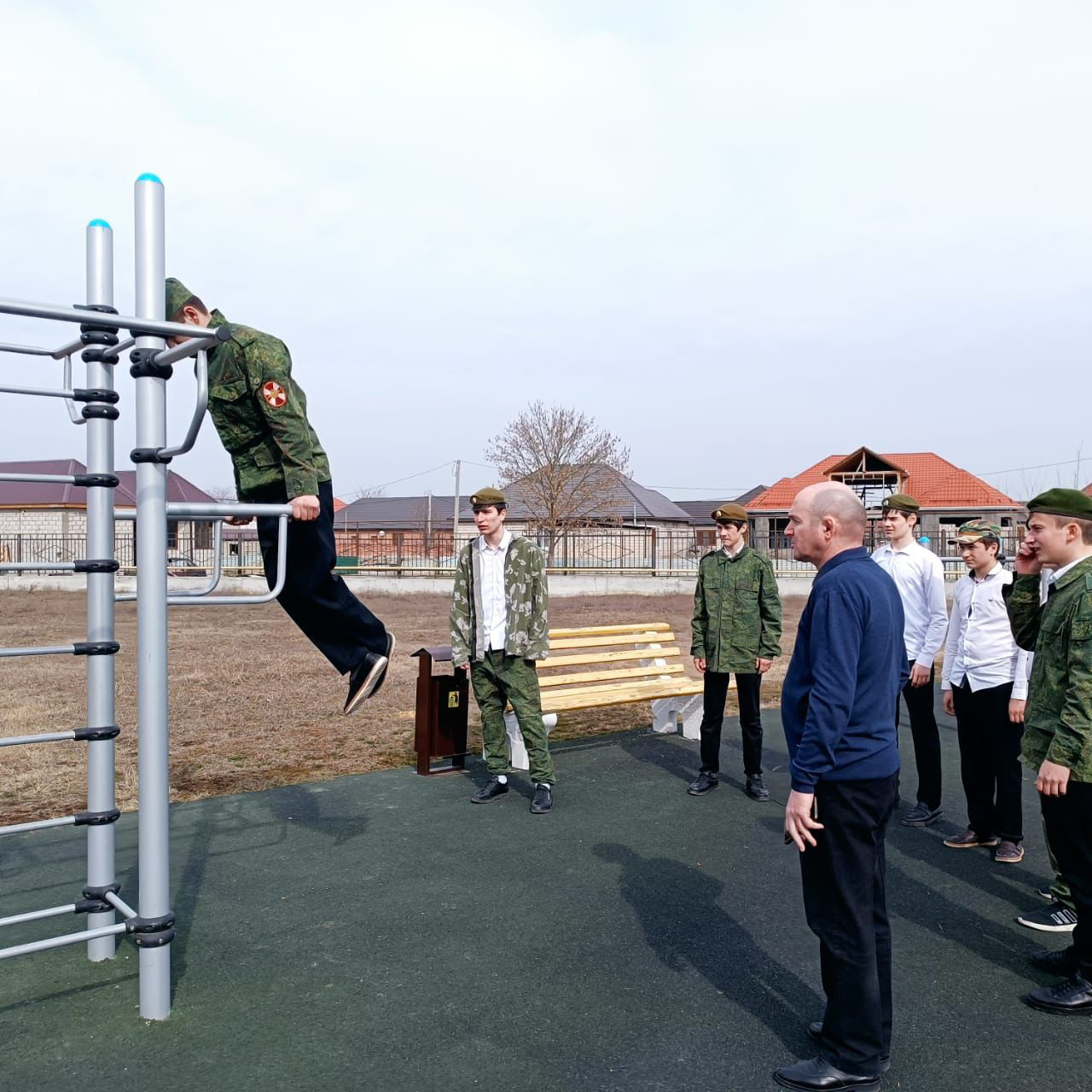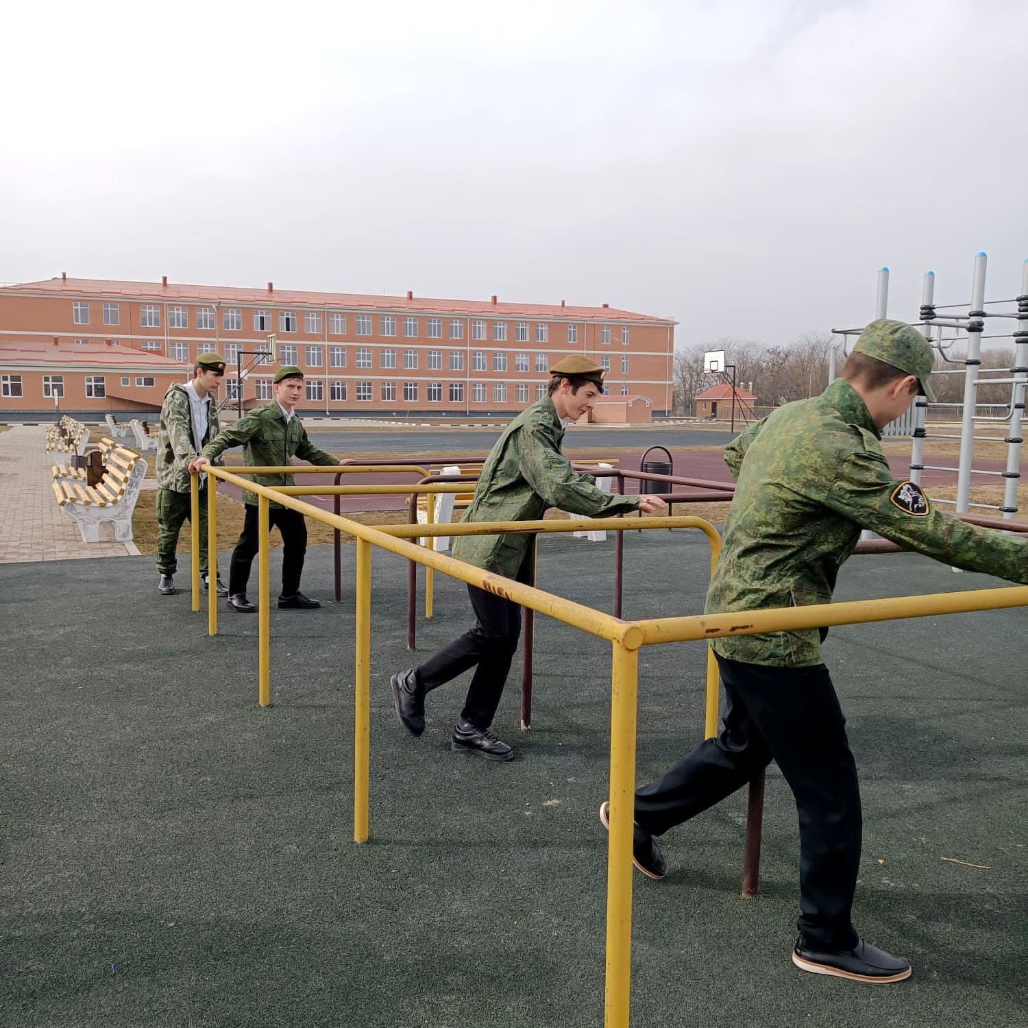 Вместе с руководителем клуба Ильясовым А. Ш члены клуба отрабатывают навыки по физической и строевой подготовке, а именно