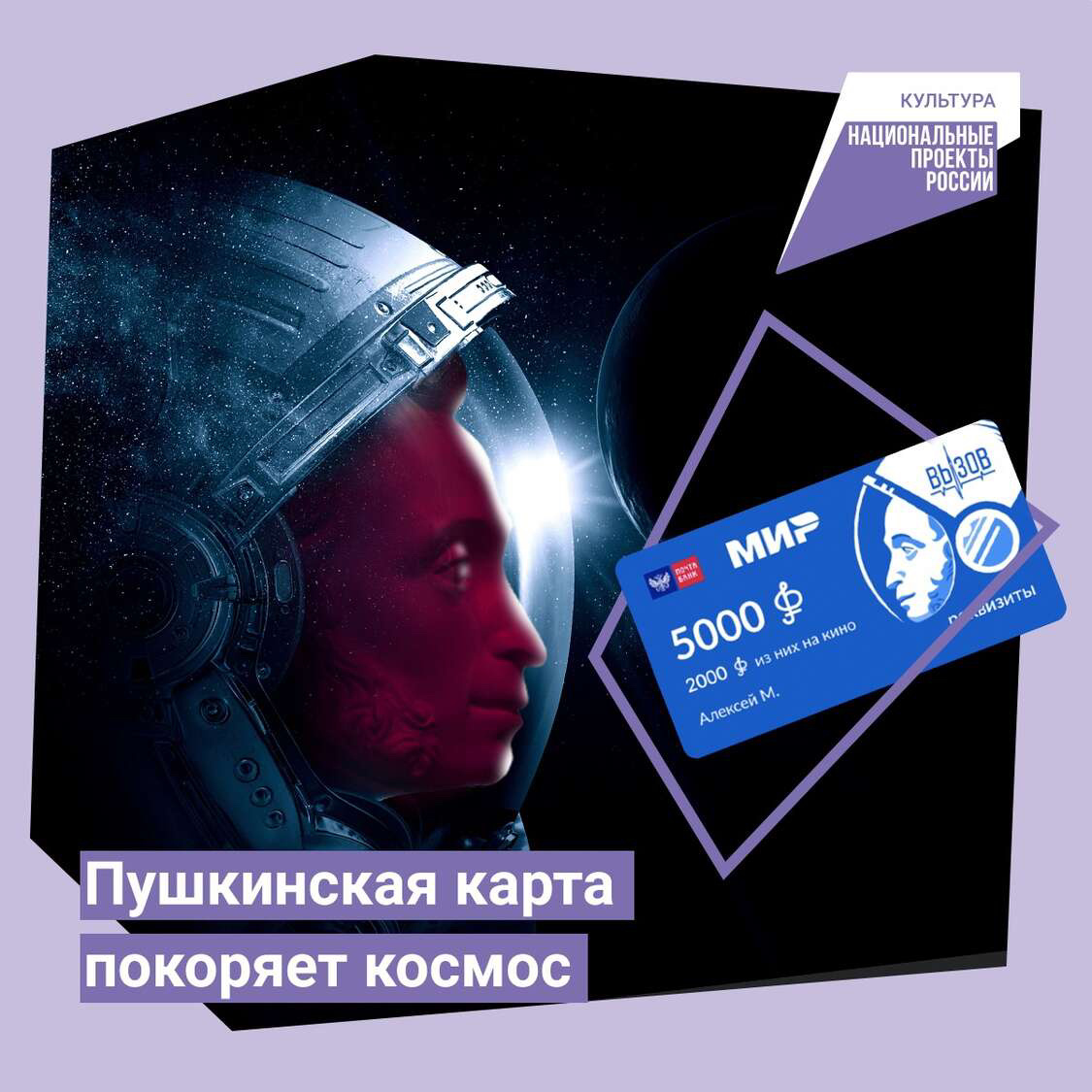 Пушкинская карта изменит дизайн по случаю выхода первого художественного фильма, снятого в космосе