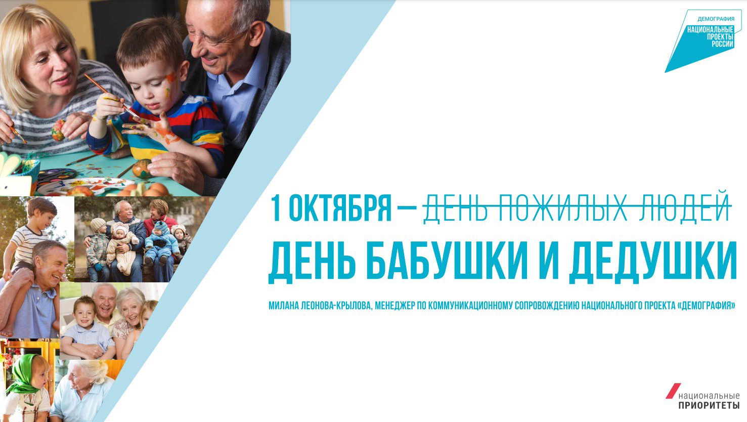 1 октября в России впервые отпразднуют«День бабушки и дедушки» 1 октября в Международный день пожилого человека в России впервые проведут акцию «День бабушки и дедушки», при поддержке нац