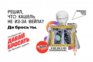 02.05.20241 мая по нацпроекту «Демография» АНО «Национальные приоритеты» совместно с Минздравом России запустило коммуникационнуюкампанию «Электронные сигареты и что они скрывают».Рекламные баннеры побуждают людей задуматься, так ли безопасны электронные сигареты для здоровья и какие последствия для организма может спровоцировать курение. Решил, что кашель не из-за вейпа? Считаешь, что курение электронных сигарет не вредно и это просто «клубничный пар»? Да брось ты.
